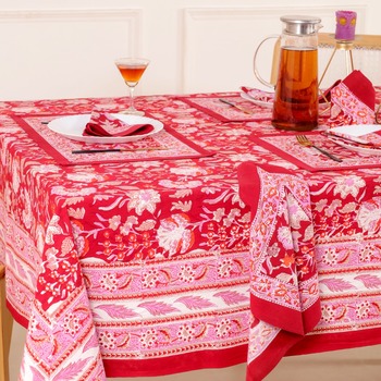 Stampa floreale stampa a mano blocco tovaglia di cotone da Jaipur cotone stoviglie 6 e 4 posti tovaglia di cotone di alta qualità